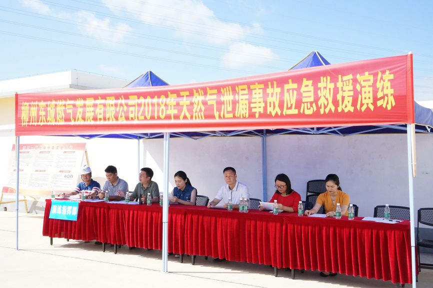 2018年6月28日,柳州東城燃?xì)獍l(fā)展有限公司在雒容燃?xì)庹九e行了天然氣泄漏事故應(yīng)急救...