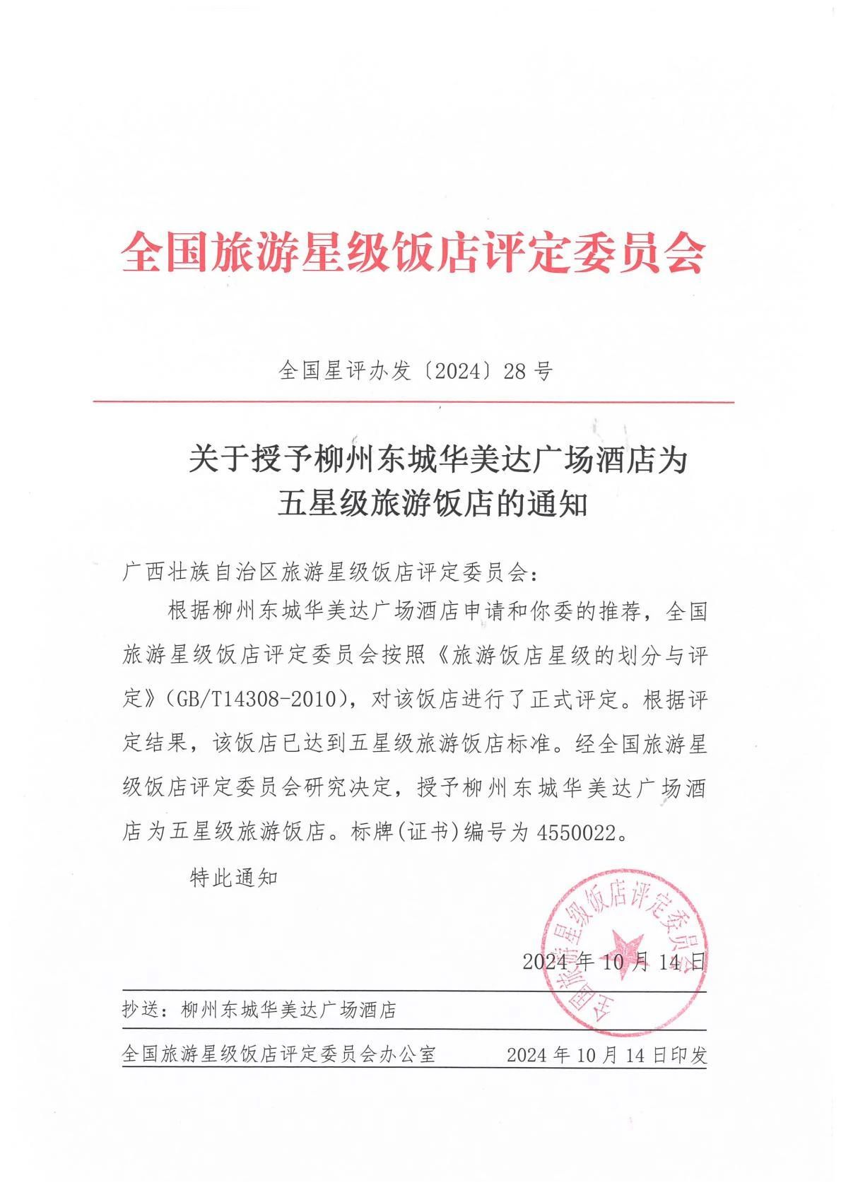 10月14日,經(jīng)全國旅游飯店星級評定委員會研究決定,正式授予柳州東城華美達(dá)廣場酒店為...