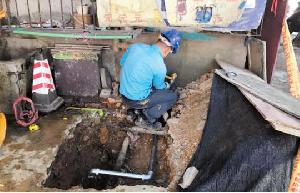 在勝利小區(qū)三村,中燃公司工作人員正在整改被占壓管道。從今年9月開始,柳州中燃城市燃氣...