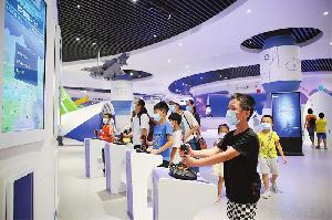 小朋友在柳州科技館二樓“飛天探夢(mèng)”主題館體驗(yàn)作為柳州特色文化新地標(biāo)的柳東新區(qū)文化廣場(chǎng)...