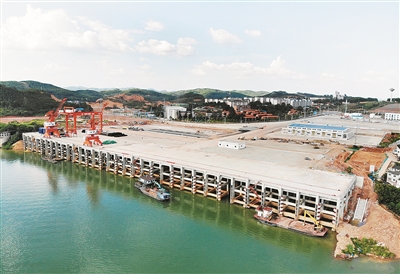 7月19日,記者在市官塘物流港看到,官塘碼頭作業(yè)區(qū)一期工程4號(hào)至5號(hào)泊位已經(jīng)建設(shè)完成...