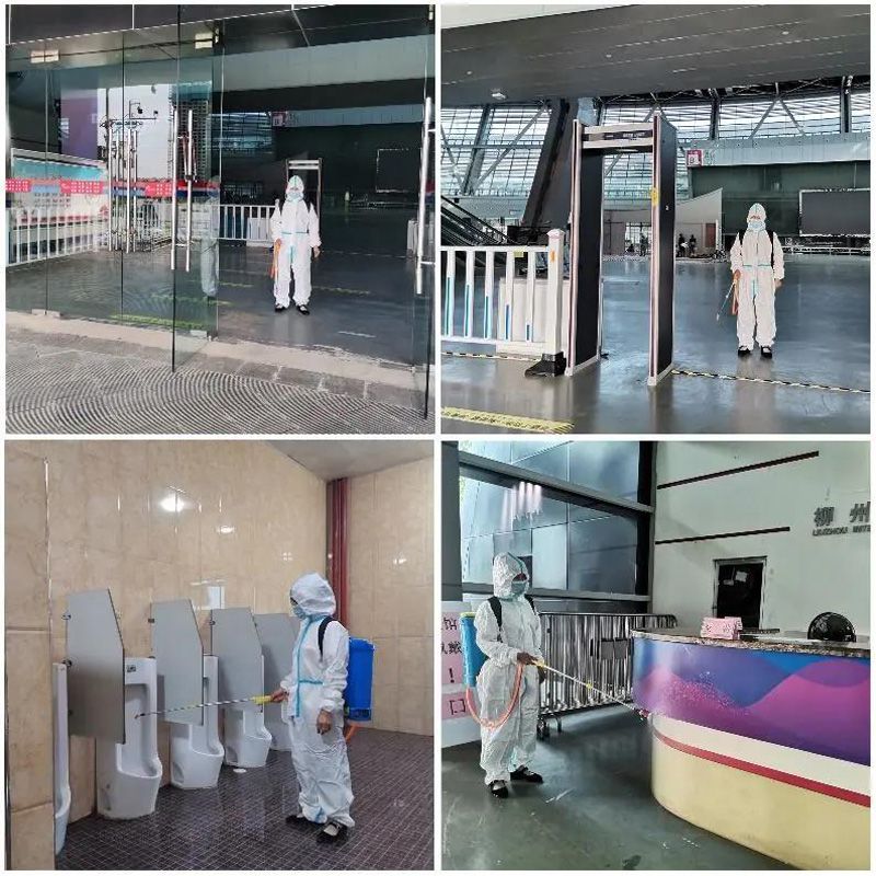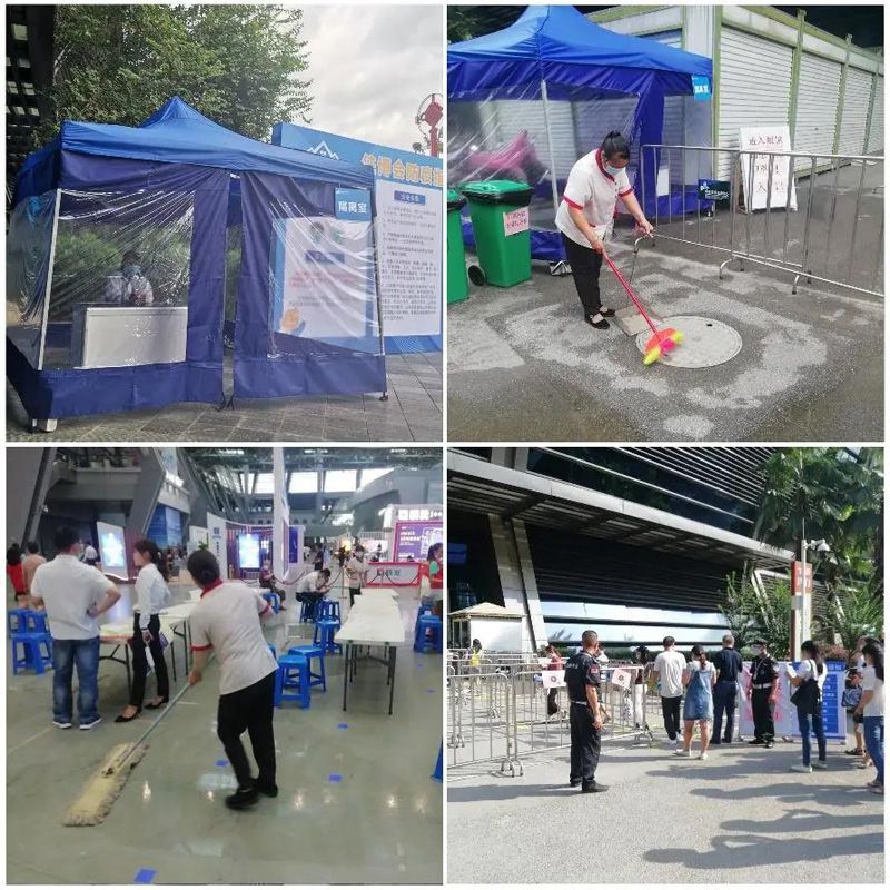 為做好疫情防控,館內(nèi)人員的安全,安泰物業(yè)的保潔們不懼酷暑身穿防護(hù)服、佩戴口罩,利用專業(yè)的噴霧設(shè)備,每日對會展中心場館各處進(jìn)行數(shù)次徹底的消毒殺菌工作,確保不留死角。