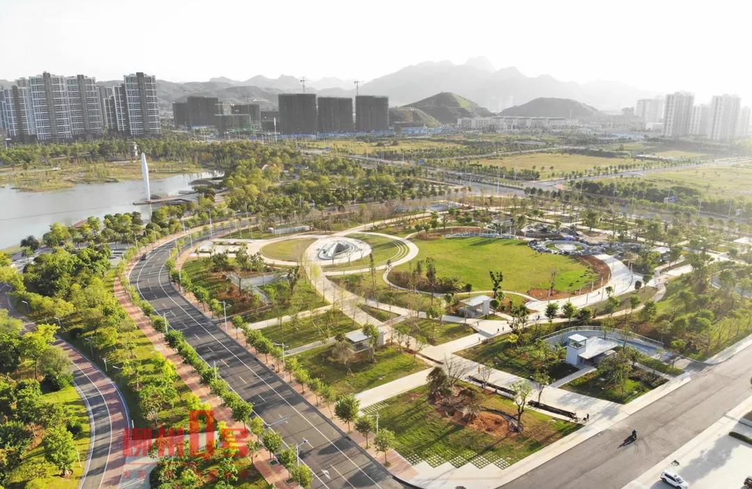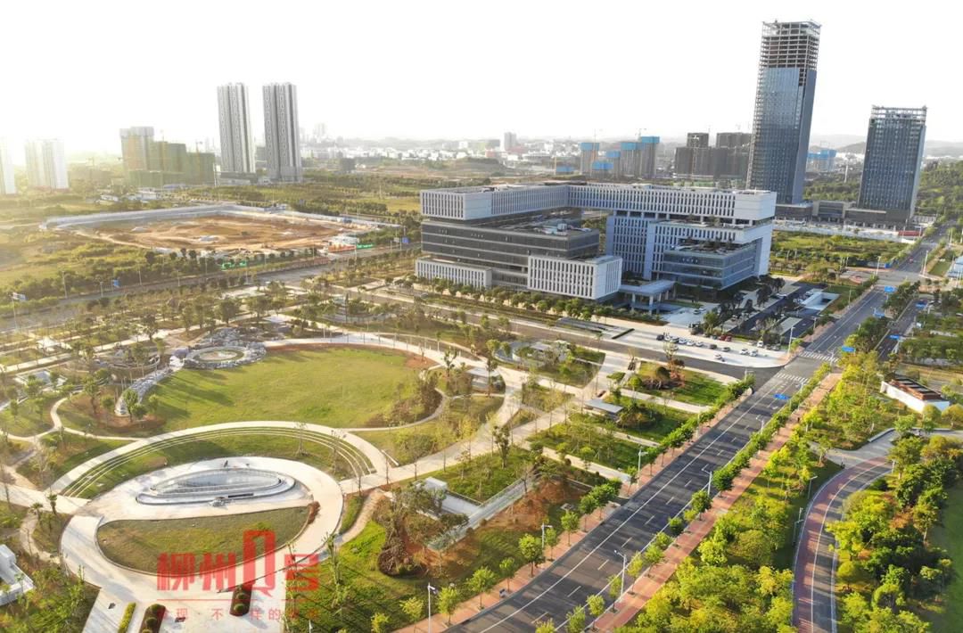 位于柳東新區(qū)內(nèi)正在建設(shè)的柳州市民服務(wù)中心及外部園林景觀