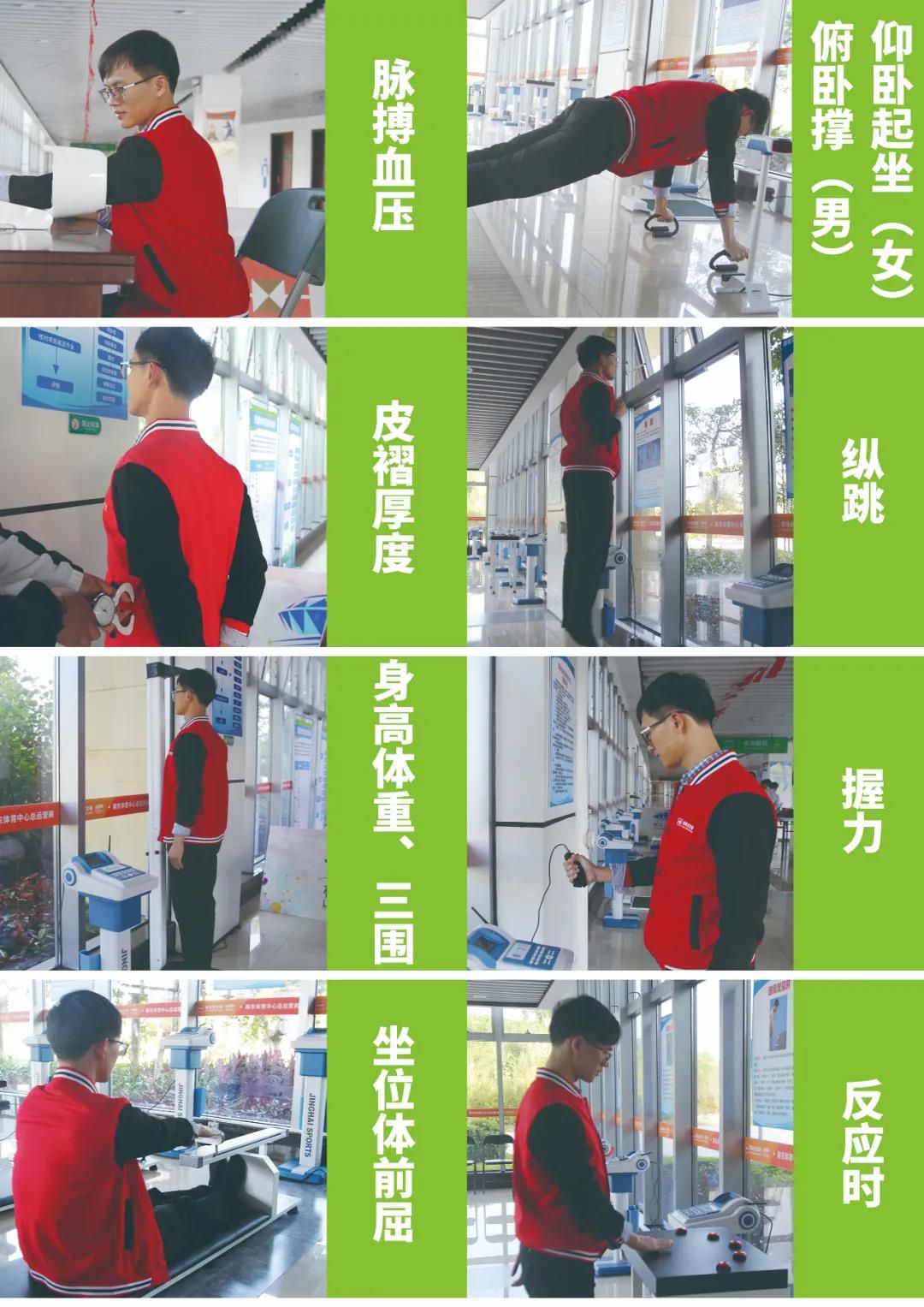 ?。ㄈ?0-69歲:身高、體重、三圍(胸、腰、臀)、皮褶厚度(上臂、腹、肩胛部)、脈搏血壓、肺活量、坐位體前屈、握力、閉眼單腳站立、反應(yīng)時(shí)。