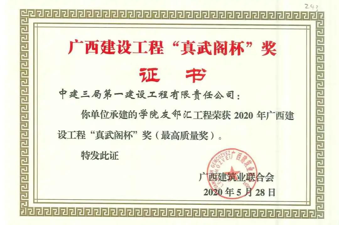 榮獲廣西建設(shè)工程“真武閣杯”獎(jiǎng)