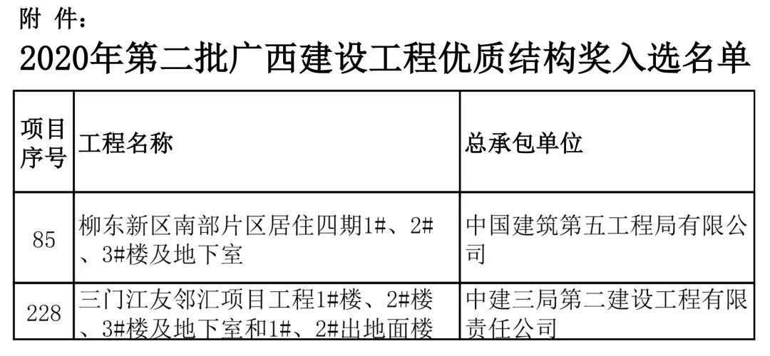 入選2020年第二批廣西建設(shè)工程優(yōu)質(zhì)結(jié)構(gòu)獎(jiǎng)