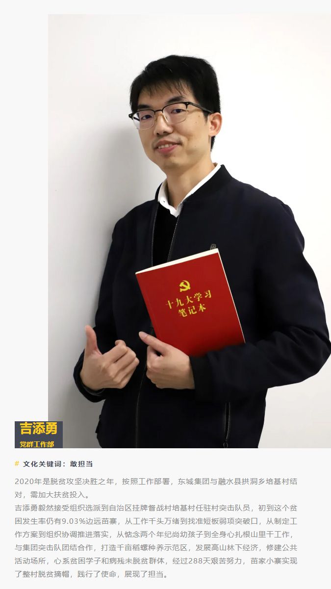 他們不是超人,但有超人般品質(zhì),他們以實(shí)際行動踐行東城企業(yè)文化。經(jīng)過層層選拔,最終以下十位獲得東城集團(tuán)2020年第四季度文化踐行之星,成為東城價(jià)值觀榜樣。