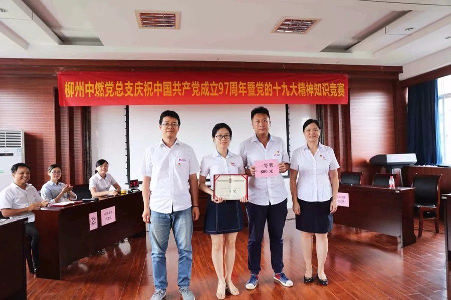 為紀念中國共產黨建黨97周年,增強踐行習近平新時代中國特色社會主義思想和黨的十九大的思想自覺和行動自覺, 進一步促進各級黨支部和廣大黨員深刻掌握和領會黨的十九大精神實質,激發(fā)干事創(chuàng)業(yè)的責任感和使命感,7月4日上午,柳州中燃公司黨總支舉辦了學習黨的十九大知識競賽。本次競賽共有生產運營黨支部、客服黨支部、機關黨支部、市場黨支部4個代表隊參賽。競賽分為個人必答題、小組必答題、搶答題、風險題、觀眾互動題五個環(huán)節(jié)。