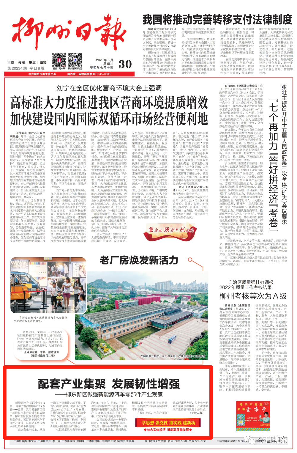 媒體窗口|《柳州日?qǐng)?bào)》頭版:柳東新區(qū)做強(qiáng)新能源汽車(chē)零部件產(chǎn)業(yè)觀(guān)察